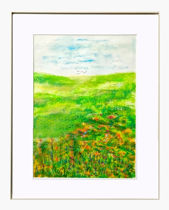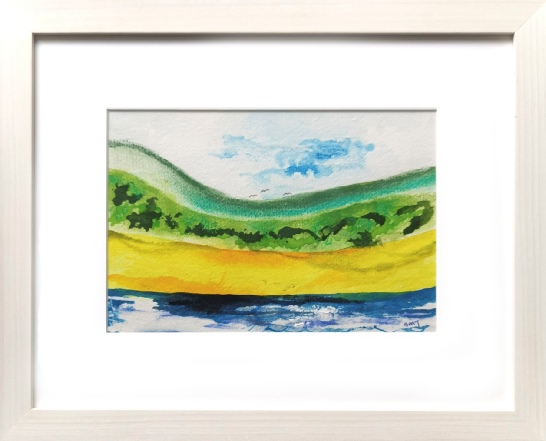 Original painting in acrylic and pastel on textured paper. Mounted size W-23cm x H-33cm