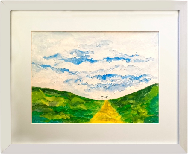Original painting in acrylic paint and pastel on textured paper.